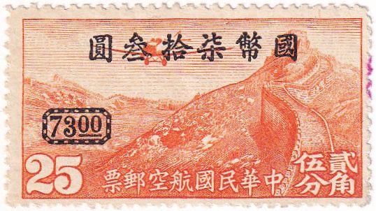 1. 1 марка "Истребитель Junkers F13 над перевалом Нанкупас и Великой стеной", 1933, 25 х 43 мм