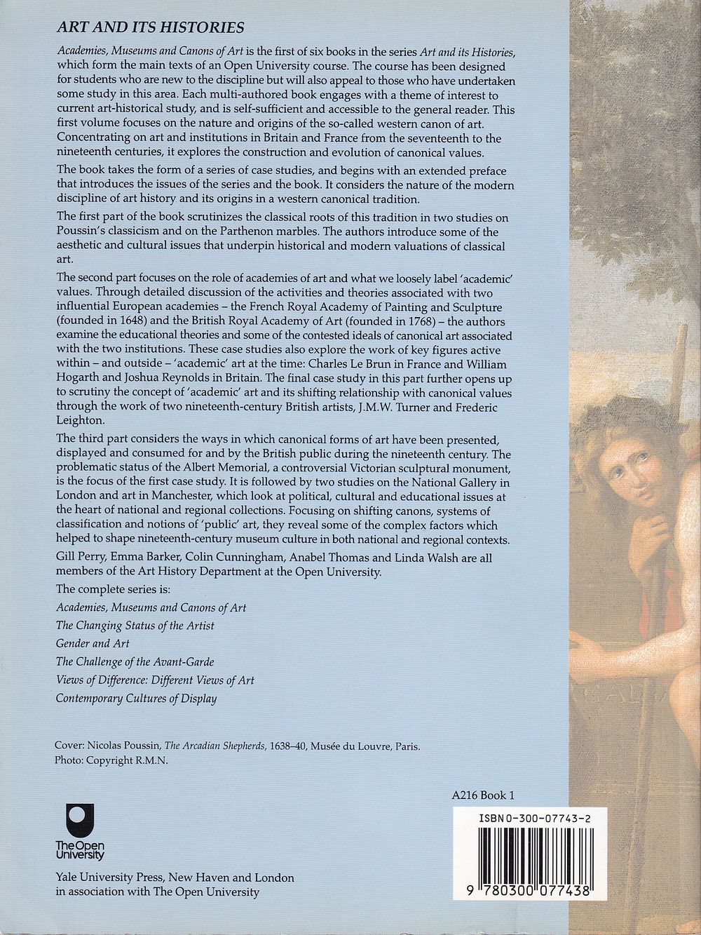 Эта богато иллюстрированная книга рассматривает различные способы, которыми произведения искусства занимали своё место в так называемом каноне западного искусства. Сосредоточившись преимущественно на искусстве и институтах Великобритании и Франции XVII–XIX веков, книга исследует формирование и эволюцию канонических ценностей. Авторы приводят ряд подробных примеров, включая «Аркадских пастухов» Пуссена, мраморные скульптуры Парфенона, фриз Мемориала Альберта и другие, чтобы дать читателям возможность попрактиковаться в использовании терминологии и аналитических навыков истории искусств.
