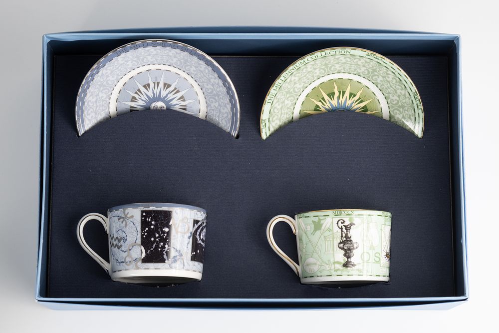 На основаниях марки черным. Коллекционное состояние предметов. Чайные пары в оригинальной коробке, потертости на коробке и пятна на коробке