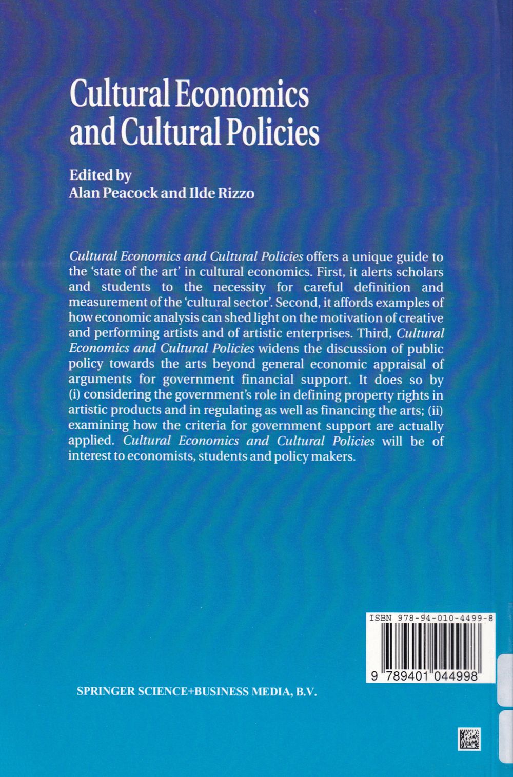 Данная книга представляет собой уникальное руководство по современному состоянию экономики культуры. Во-первых, она обращает внимание ученых и студентов на необходимость тщательного определения и измерения «культурного сектора». Во-вторых, в ней приводятся примеры того, как экономический анализ может пролить свет на мотивацию творческих и исполнительских работников и художественных предприятий. В-третьих, «Экономика культуры и культурная политика» расширяет дискуссию о государственной политике в отношении искусства за пределы общей экономической оценки аргументов в пользу государственной финансовой поддержки. В ней рассматривается роль государства в определении прав собственности на художественную продукцию и в регулировании, а также финансировании искусства; изучается, как на практике применяются критерии государственной поддержки.