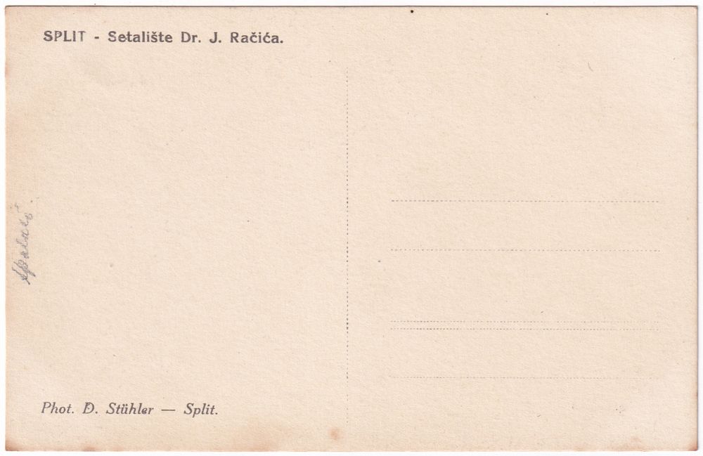 На обороте напечатано: SPLIT - Setalište Dr. J. Račića. и подпись Phot. D. Stühler - Split.