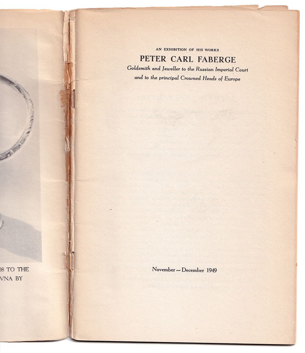 Редкий каталог одной из крупнейших выставок, когда-либо проводившихся в Америке после Второй мировой войны. Выставка славилась тем, что на ней были представлены самые «русские» из всех экспонатов - не менее семи императорских пасхальных яиц. Выставка проходила в нью-йоркской галерее A La Vieille Russie в ноябре-декабре 1949 года.