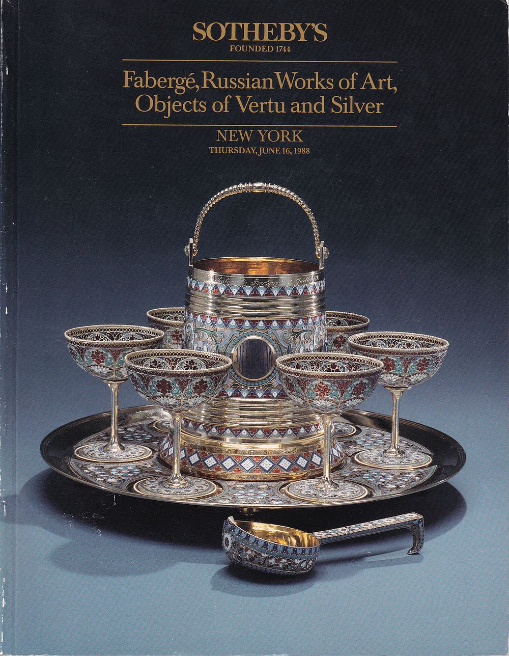 Например, два редких ковша в неорусском стиле работы мастерских Карла Фаберже, украшенных серебром и перегородчатой эмалью, эстимейт $15,000 – 18,000. Или настольные часы в форме триптиха с миниатюрными рамками для фото на створках, украшенные серебром, эмалью и гильотировкой цвета royal blue работы Йохана Виктора Аарне также для мастерских Карла Фаберже, эстимейт $20,000 – 30,000. А также набор набор для пунша украшенный перегородчатой эмалью в фирменном для мастеров из Павловска для ювелирного дома Овчинникова, эстимейт $40,000 – 50,000.