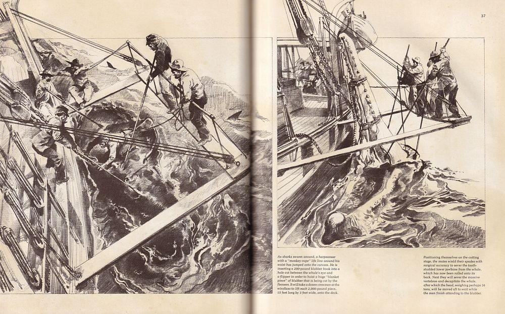 Все это время китобои использовали небольшие парусные суда и поражали свою добычу гарпунами с гребных шлюпок. Затем киты буксировались к берегу или кромке льда либо разделывались прямо в море. В то же время китобойный промысел в Японии, зародившийся около 1600 года, проводился с помощью сетей и флотилий небольших шлюпок.