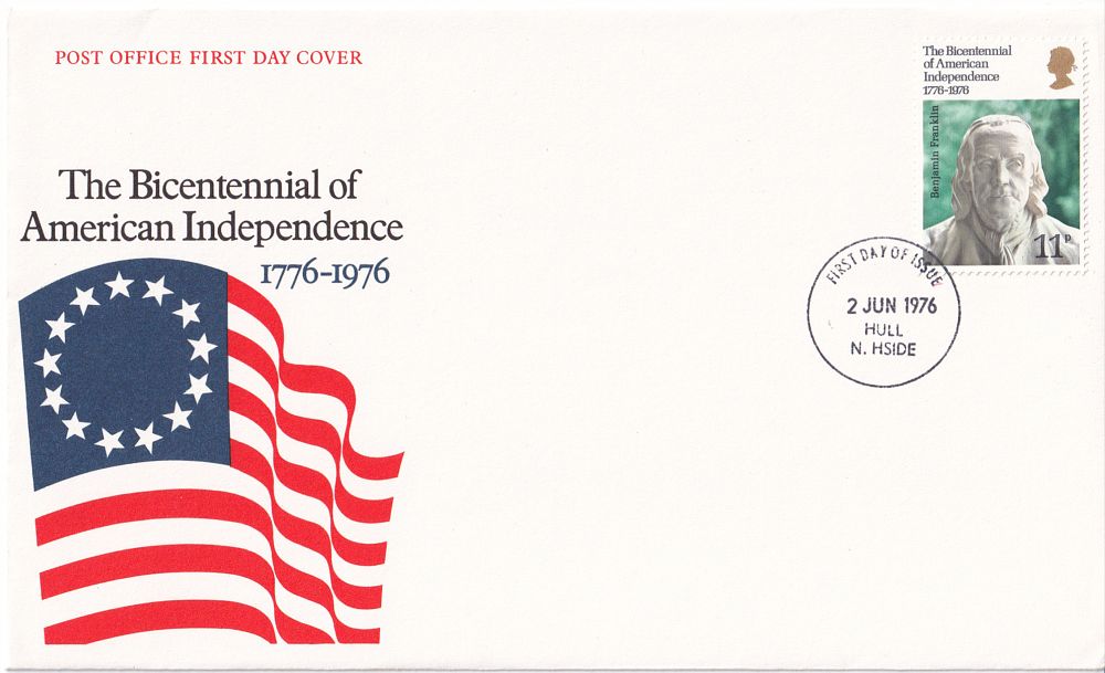 Выпуск данной марки был посвящен 200-летию независимости США (1776-1976). Бенджамин Франклин (1706-1790) - американский политический деятель, дипломат, изобретатель, учёный, философ, писатель, масон, полимат. Одна из самых влиятельных фигур XVIII века.