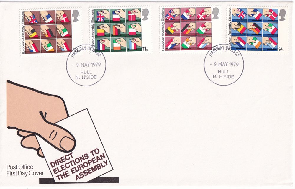 Данная серия марок посвящена выборам в Европейский парламент. Выборы в Европейский парламент проходили в июне 1979 года в 9 европейских странах (ФРГ, Франция, Италия, Бельгия, Нидерланды, Дания (в т.ч. Гренландия), Люксембург, Ирландия, Великобритания). Это были первые общенародные выборы в Европарламент. Наибольшее число голосов получили Социалисты, затем Христианские демократы, на третьем месте были Европейские демократы (Консерваторы севера Европы). В парламенте были представлены фракции Либералов, Коммунистов и Прогрессистов. Выборы проходили в течение четырёх дней: 10 июня — в Великобритании, 11 июня — в Ирландии, 13 июня — 7 стран . Всего было избрано 410 человек.
