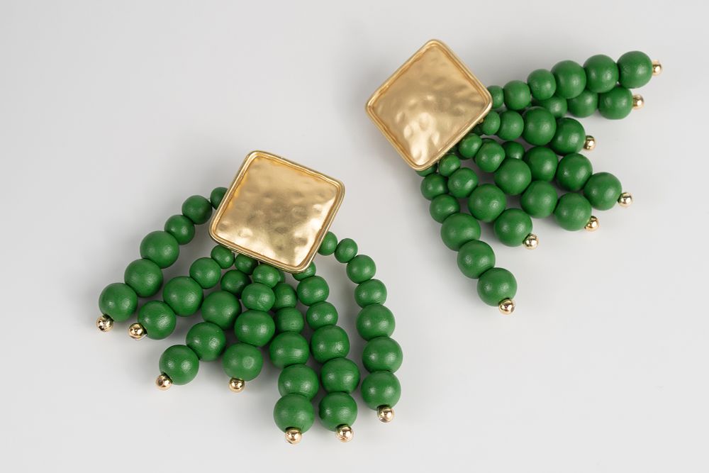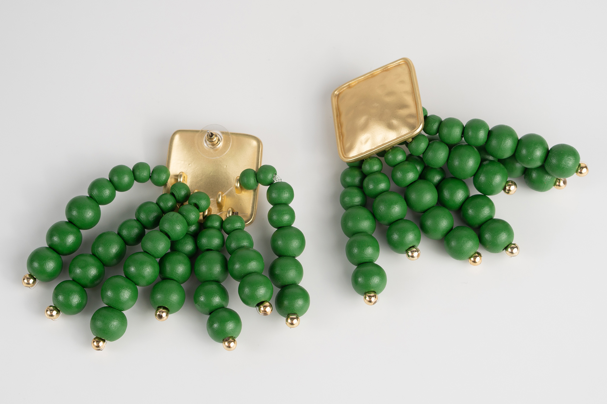Гипоаллергенный сплав с матовым покрытием, дерево, бусины.