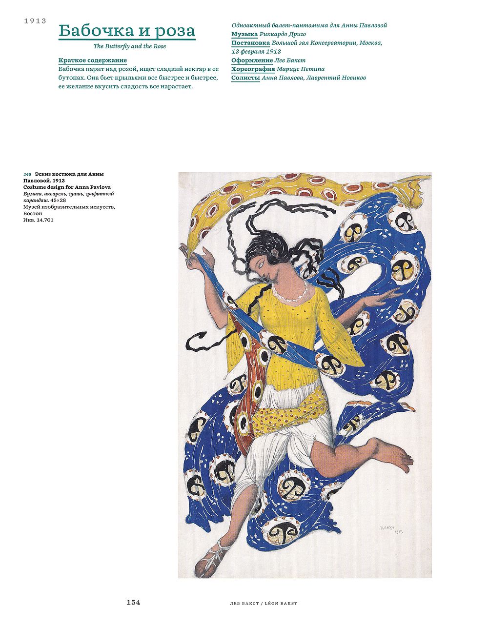 Издание подготовлено к масштабной выставке, прошедшей 8 июня – 4 сентября 2016 в Главном здании и Отделе личных коллекций музея. В иллюстрациях представлена экспозиция, посвященная творчеству одного из самых ярких художников и сценографов начала XX века – Льва Самойловича Бакста (1866–1924), известность которому принесли прежде всего костюмы и декорации для дягилевских «Русских сезонов».