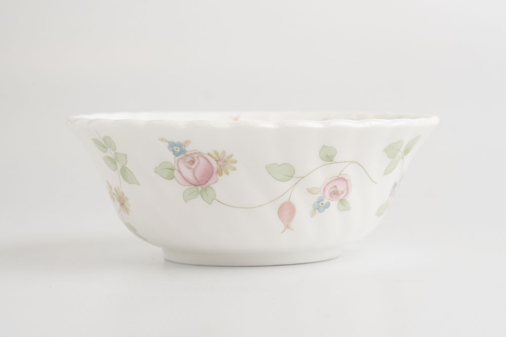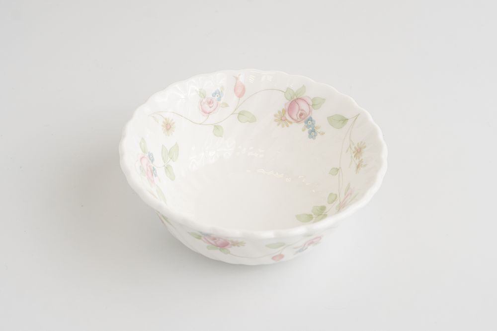 Wedgwood Rosehip - это красивый цветочный орнамент на белоснежном фоне. Нежно-голубые и розовые цветы равномерно распределены по рифленой поверхности.