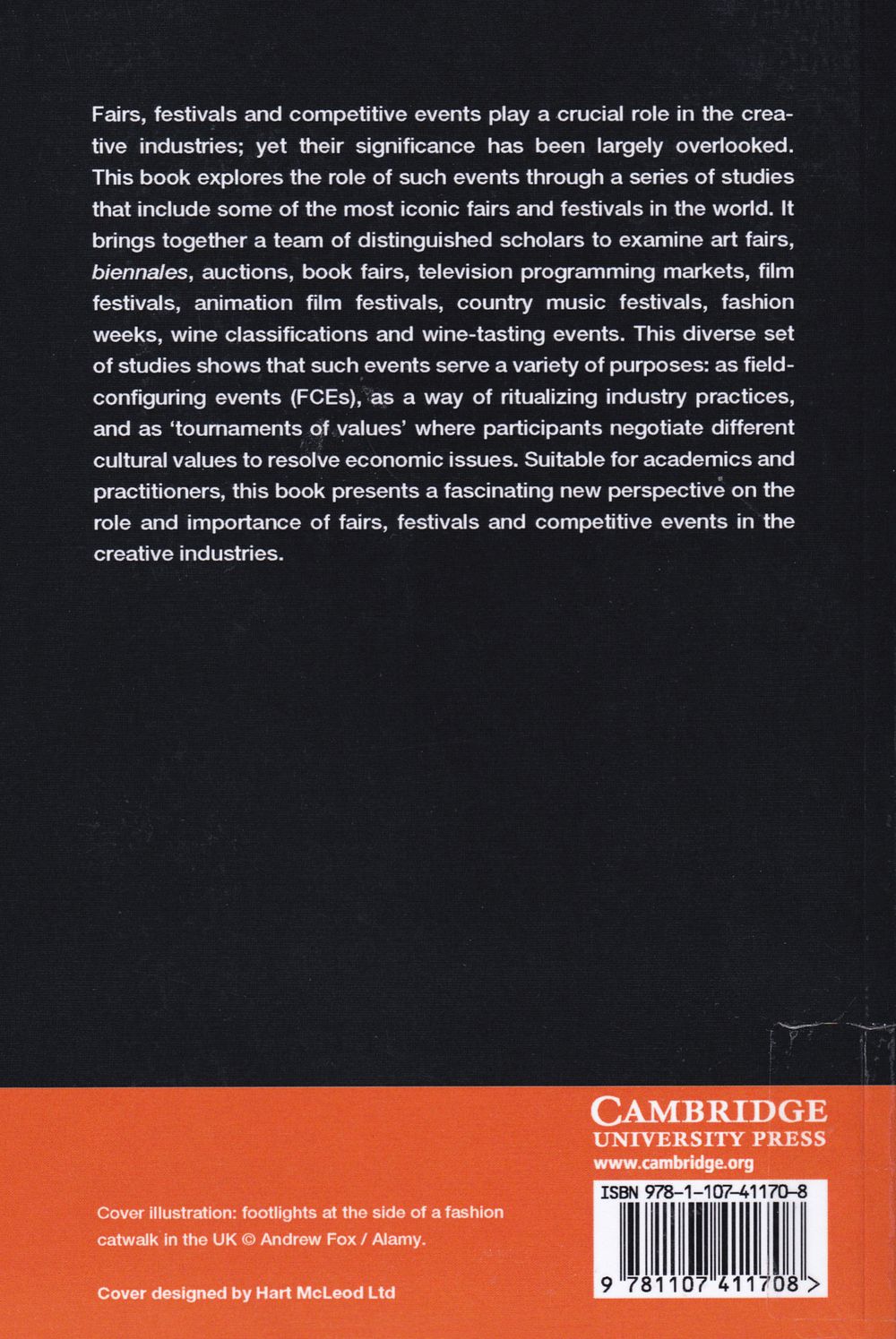 Ярмарки, фестивали и конкурсы играют важнейшую роль в творческих индустриях, однако их значение в значительной степени упускается из виду. В этой книге роль таких мероприятий рассматривается в серии исследований, включающих некоторые из самых знаковых ярмарок и фестивалей в мире.