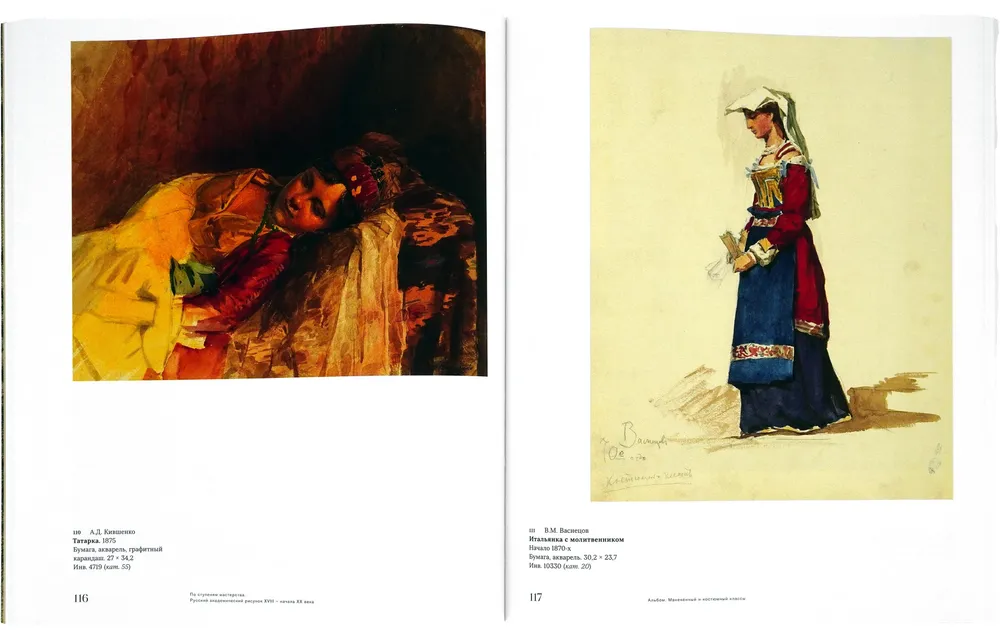 Альбом сопровождается каталогом, снабженным краткими биографиями художников и развернутыми комментариями к произведениям. Раздел с фрагментами мемуаров середины XIX - начала XX века дополняет содержание статьи существенными и занимательными подробностями.