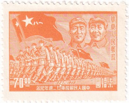 - 1 марка "Чжу Дэ, Мао Цзэ-дун и войска", 1949, 34 х 28 мм