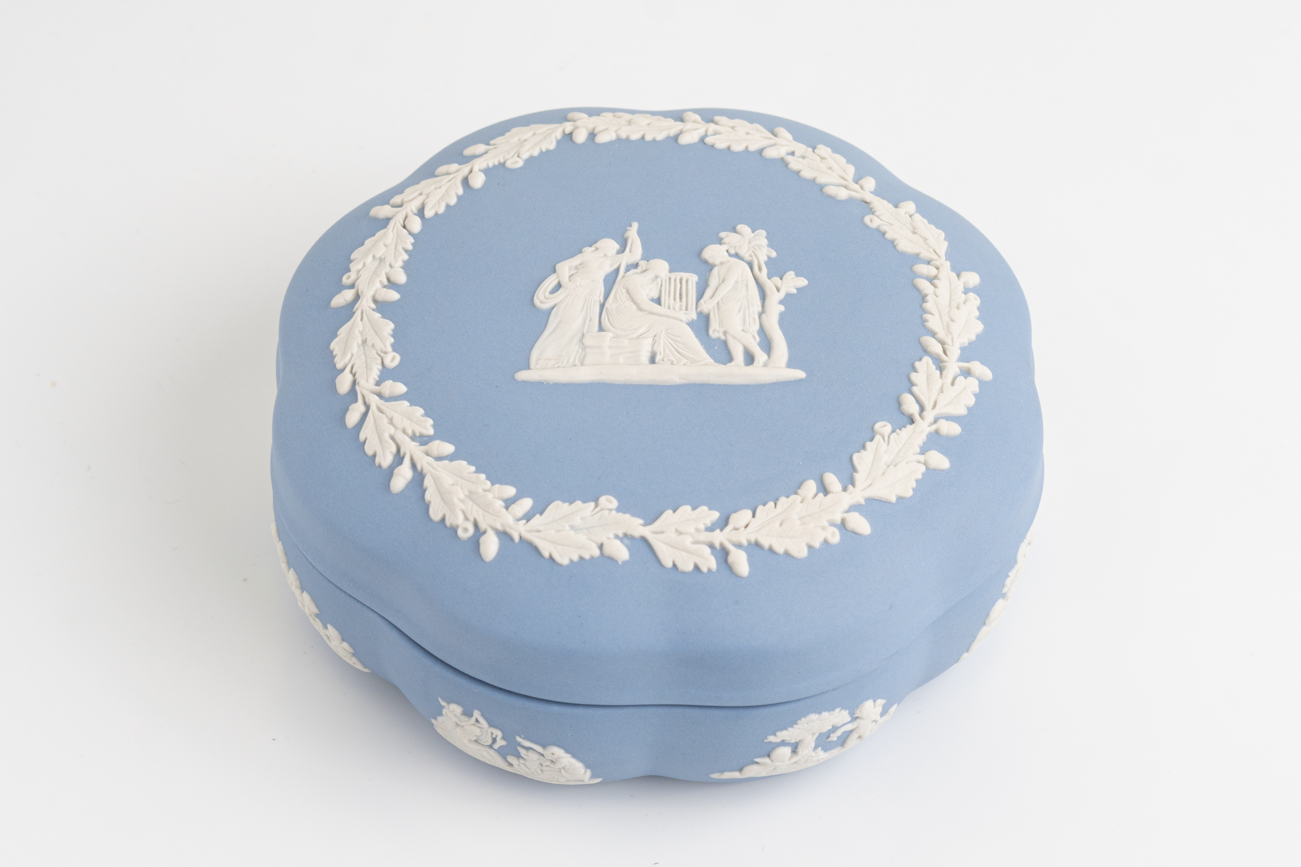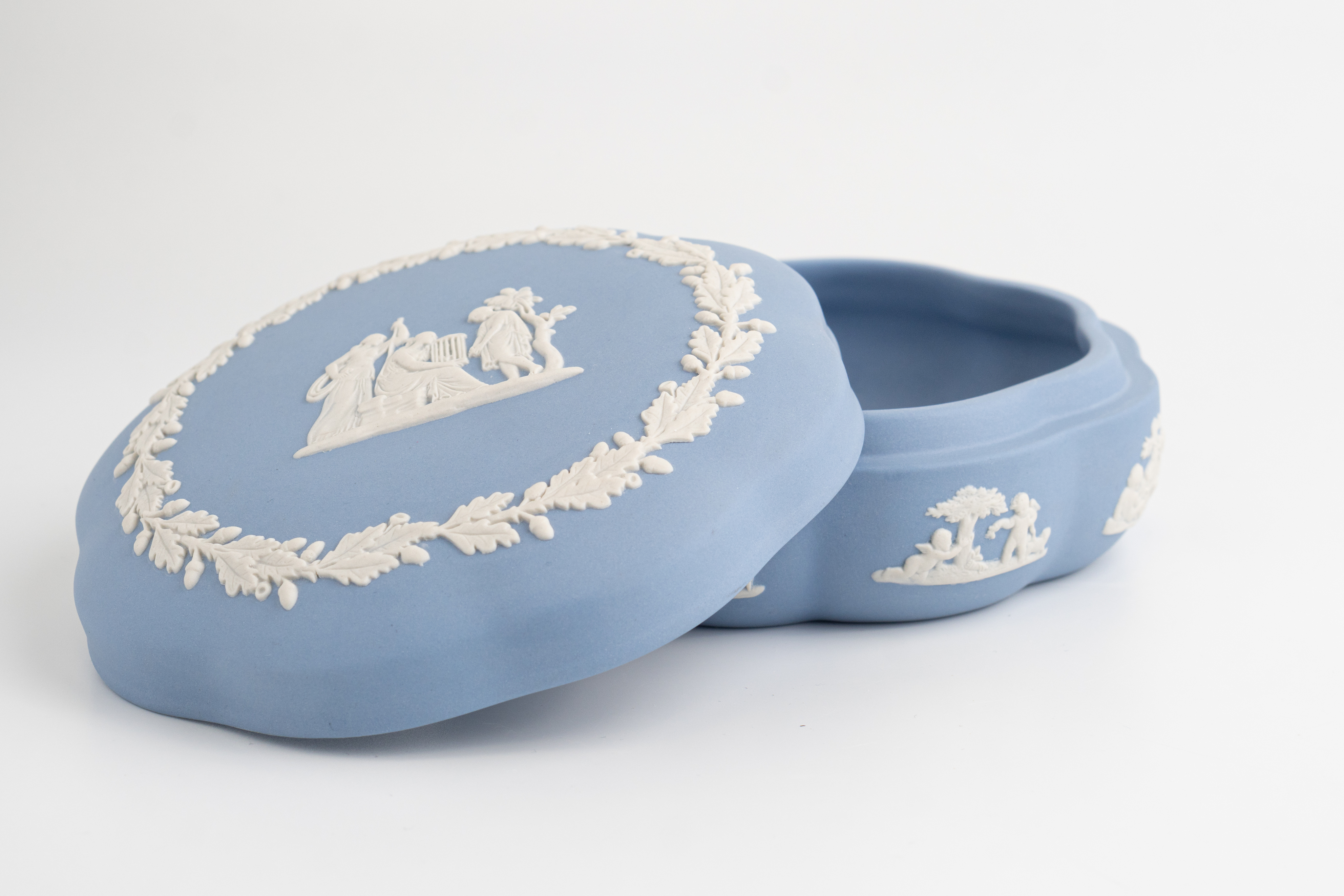 Яшмовый и/или веджвудский фарфор - вид мелкозернистой неглазурованной керамики, созданный английским гончаром Джосайей Веджвудом в 1775 году в результате длительных экспериментов, направленных на освоение техники изготовления фарфора. Его название происходит от того, что по своей твердости он напоминает природный камень яшму. В натуральном виде яшма белая, а окрашивается красителями на основе оксида металла. Наиболее распространенный оттенок - бледно-голубой, но также использовались темно-синий, сиреневый, зеленый, черный и желтый.