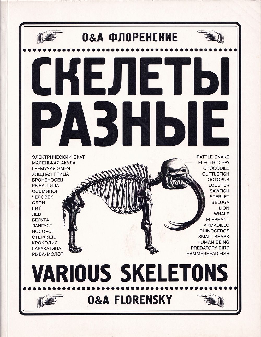«Скелеты разные» (2007) – серия зоо- и антропоморфных ассамбляжей из отслуживших бытовых вещей, ставшая эмблематичной и неотъемлемой частью коллекции музея современного искусства ПЕРММ «Русское бедное». Эта серия продолжает традицию симулятивных художественных и научных коллекций – темы, которую художники разрабатывают с середины 1990-х гг. выставками «Русский альбом», «Русский дизайн», «Русский патент», «Русский трофей». Флоренские были одними из первых отечественных художников 1990-х годов, кто стал продолжателем идеи фиктивного архивирования и музеефицирования, открытой в начале ХХ века Марселем Дюшаном и продолженной на исходе столетия Ильей Кабаковым, Еленой Елагиной и Игорем Макаревичем.