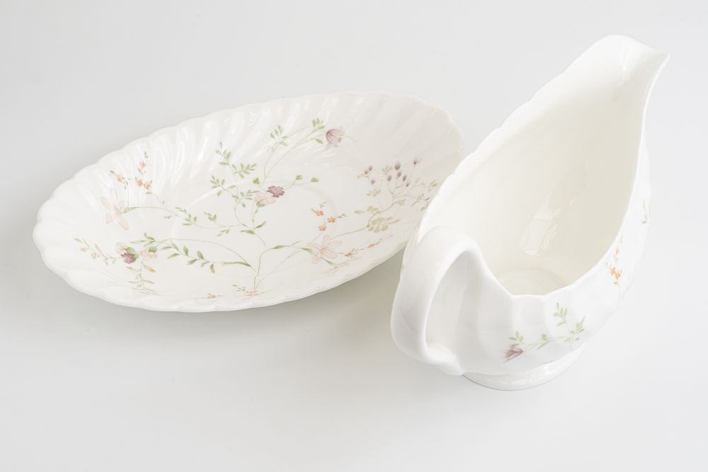 Костяной фарфор, деколь, доработка ручной росписью