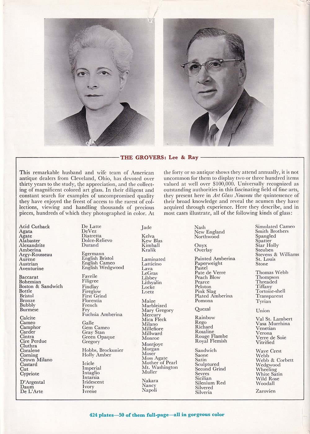 В то время как все значимые виды художественного стекла, произведенные в этот период, освещены в лаконичном тексте, захватывающая плеяда из 424 пластин, расположенных по всей книге, была выбрана не только из-за их редкой красоты и подлинности, но и для того, чтобы показать репрезентативные образцы, подобные тем, которые еще можно приобрести.