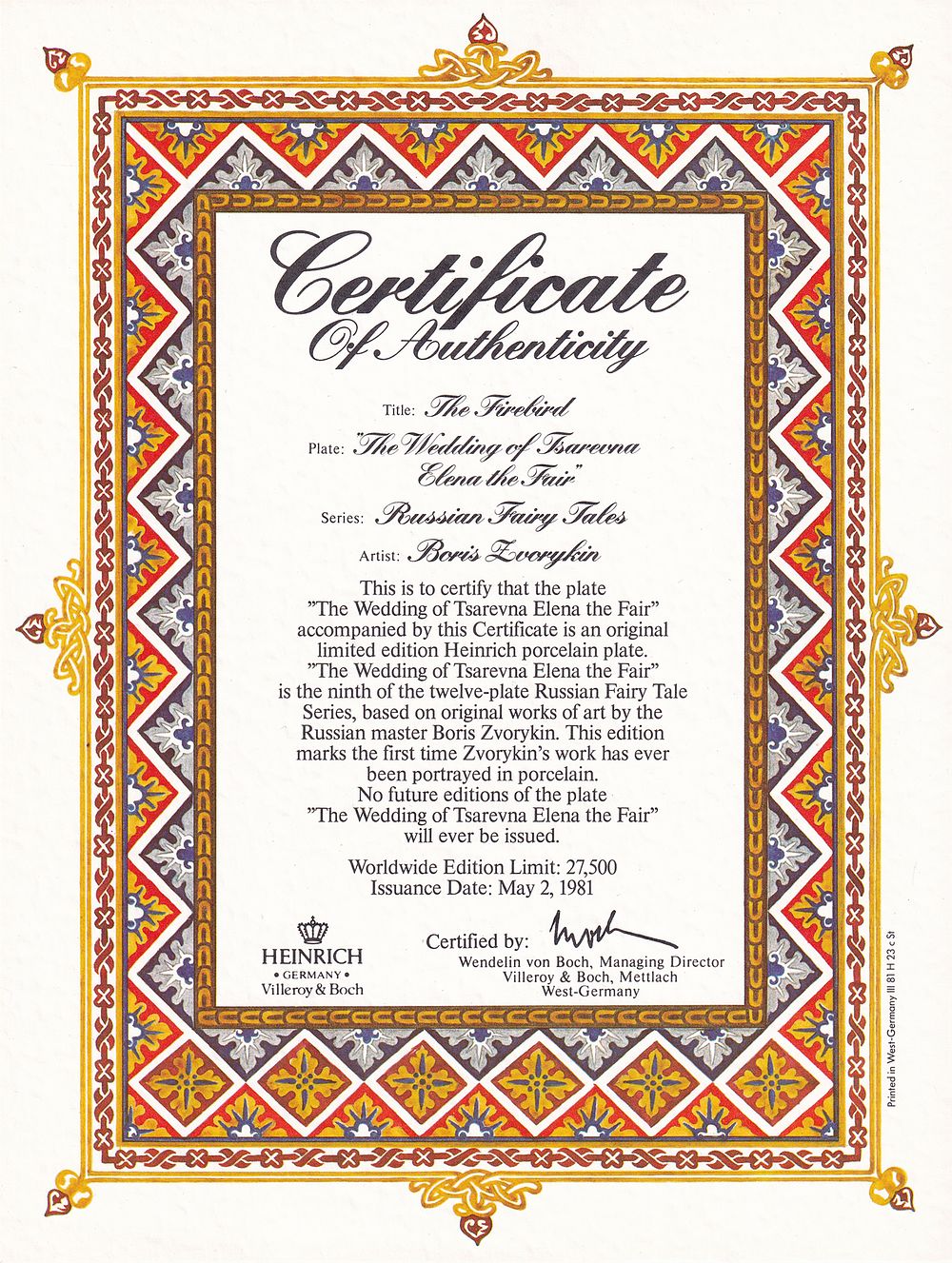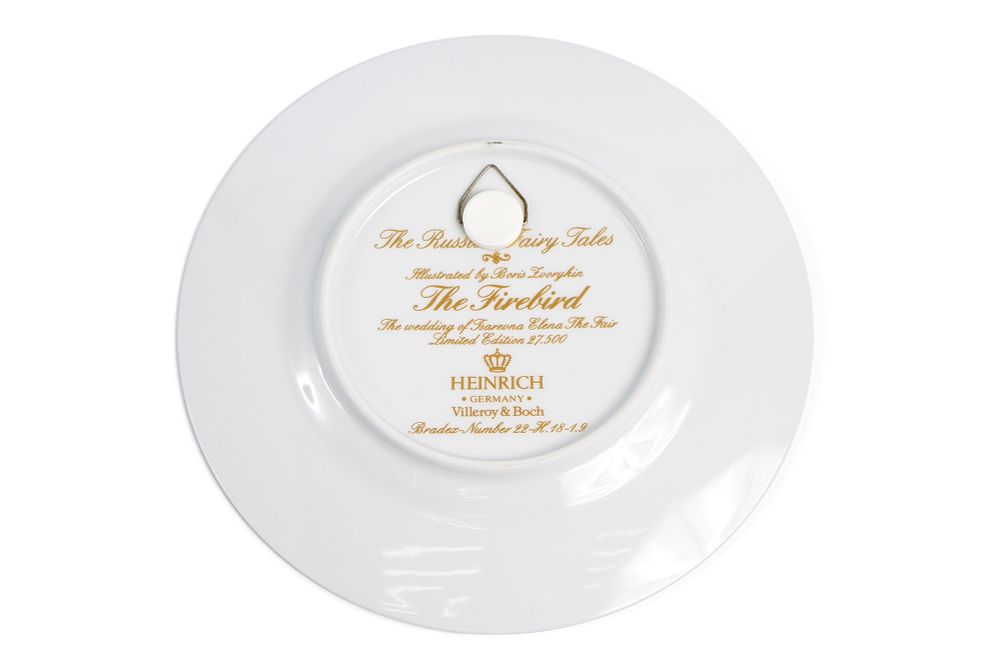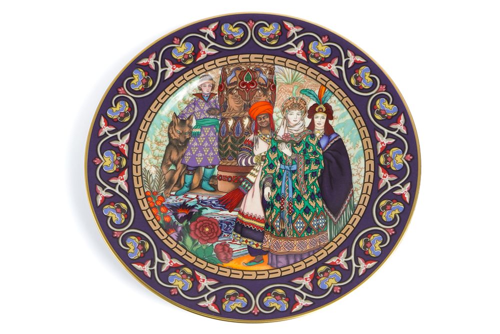 Иллюстрация с оригинала рисунка «Свадьба Царевны Елены Прекрасной» (1925) была использована для этой тарелки.