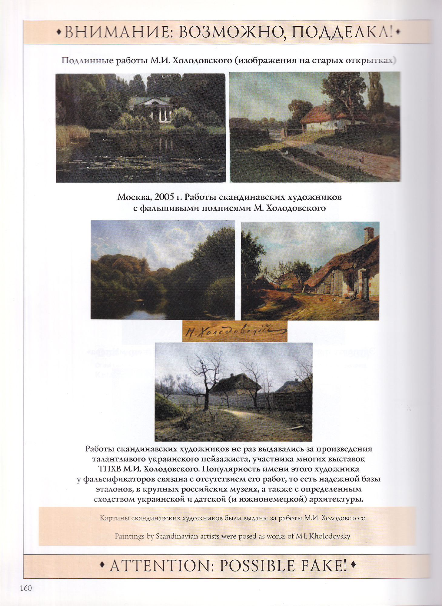 В издание вошли материалы пяти томов «Каталога подделок произведений живописи», который выпускала Федеральная служба по надзору за соблюдением законодательства в области охраны культурного наследия (Росохранкультура), а также добавлена часть новой информации. В целом, в Каталоге представлены семьсот произведений живописи, с умыслом или ошибочно атрибутированных как подлинные работы крупных русских художников, по оценкам экспертов их общая сумма на настоящий момент могла бы достигать 100 млн долларов США.