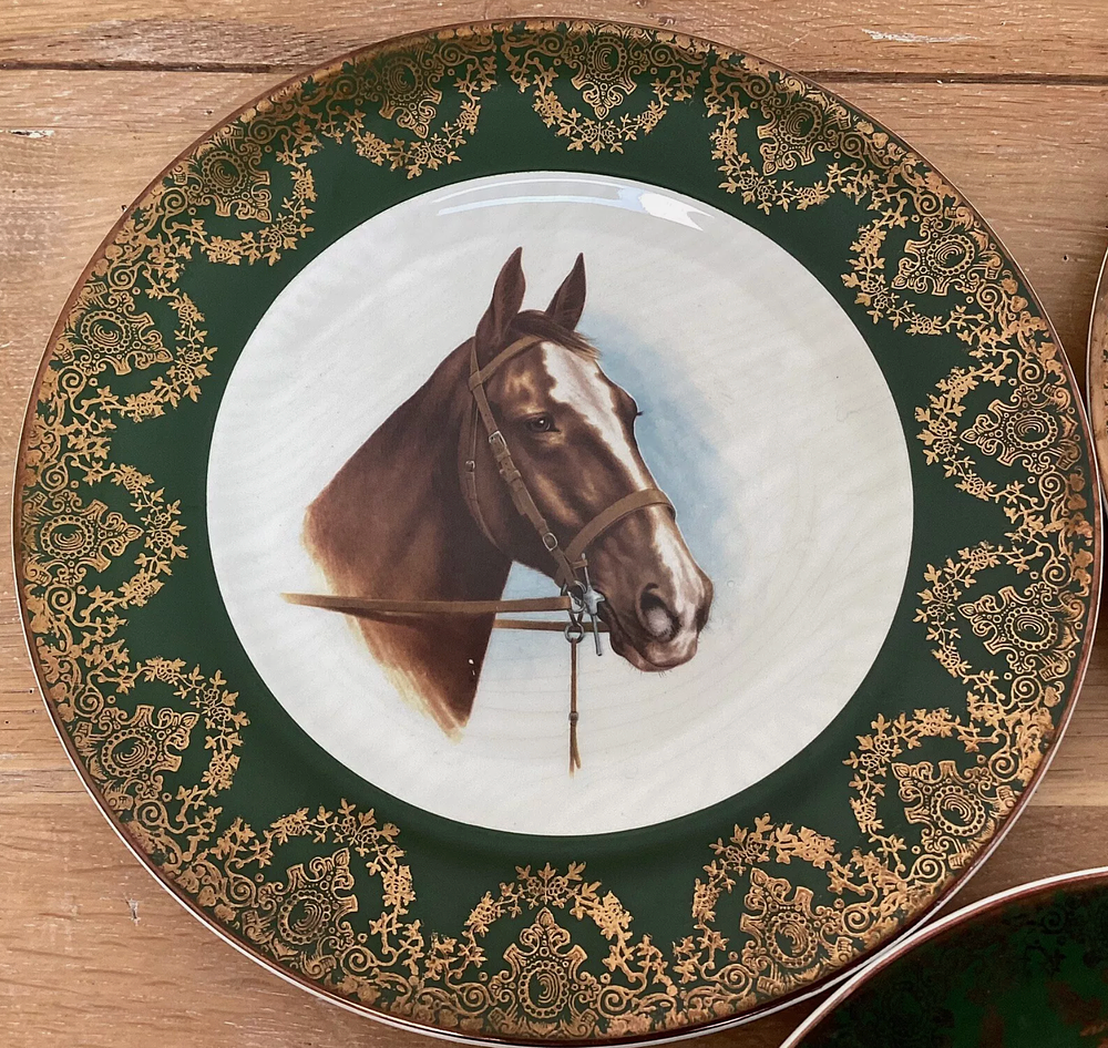 Винтажная коллекционная декоративная кабинетная тарелка с изображением лошади