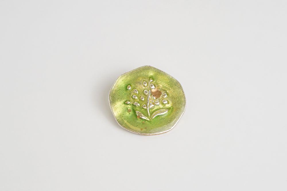 Металл белого цвета, эпоксидная смола, золотистая краска.