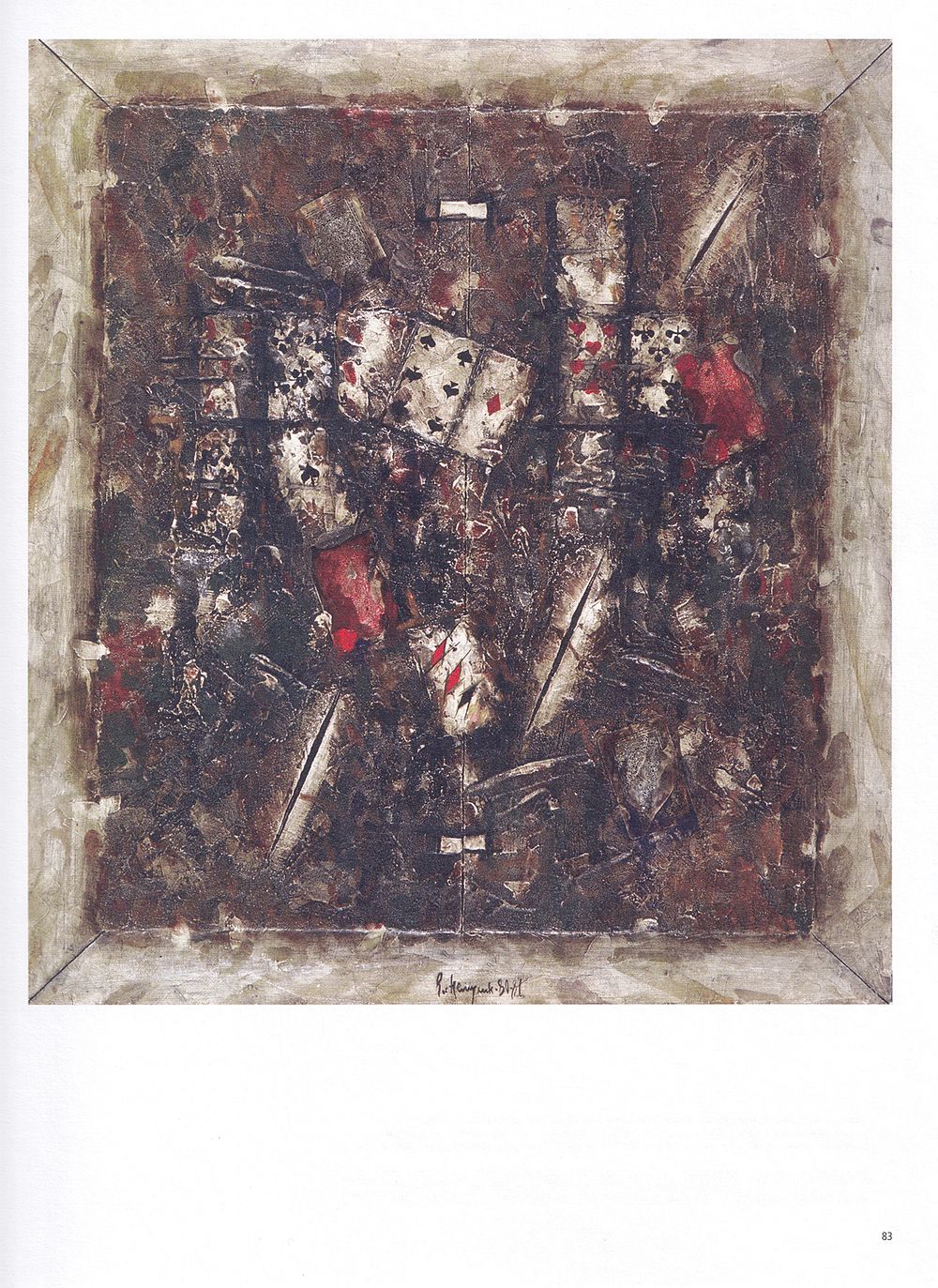 Владимир Немухин всю сознательную жизнь жил в Москве. Впечатления от города повлияли на его живописный стиль, привнеся в него угловатость, асимметричность и многослойность. В результате длительного творческого поиска художник нашел еще один мотив, вновь и вновь возникающий в его произведениях на протяжении десятилетий – игральную карту. Колода становится символом таинственной и мистической неизвестности, неопределенности будущего. Едва заметная под слоем краски, занимающая центральное место в композиции игральная карта с ее формальными свойствами и глубоким символизмом стала одной из центральных тем в творчестве Немухина.